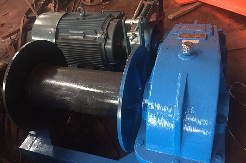 卷揚(yáng)機(jī)由電動機(jī)、聯(lián)軸器、制動器、減速機(jī)和繩筒等組成,共同安裝在底盤上。由電源驅(qū)動繩筒、卷繞繩索來實(shí)現(xiàn)牽引任務(wù)的裝置,能起到吊錘、吊樁、拉樁、拖樁、拔樁、加壓、移位等作用。